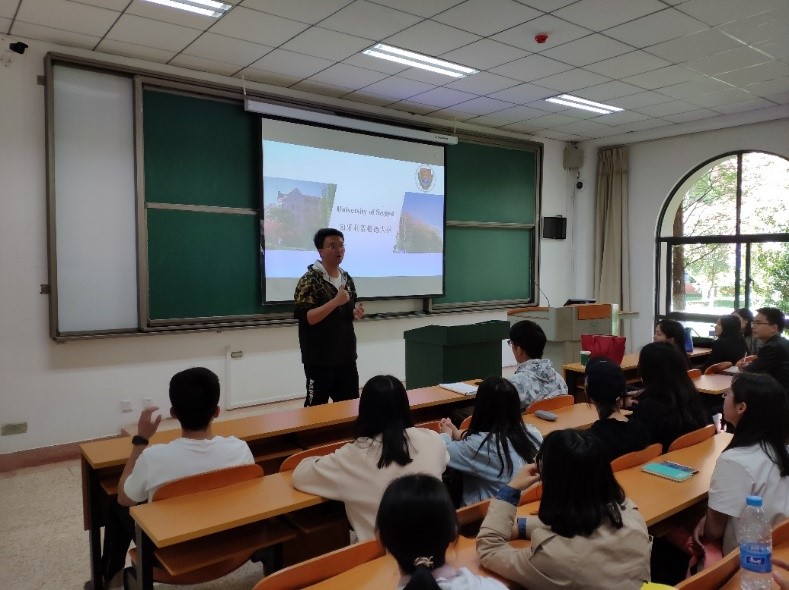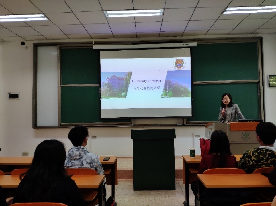 来自匈牙利塞格德大学的中国工作负责老师杨老师简要介绍了匈牙利国家的情况,系统介绍塞格德大学教学,科研,生活和国际化开展等同学们所关心的内容。而后,杨老师为大家讲解了赛格德大学针对中国学生所推出的游学、交换和留学项目,并对同学们对留学方面所关心的问题进行了细致地说明。