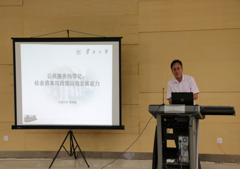 梁双陆老师在题为“公共服务均等化、社会资本与西部自我发展能力”的演讲中,首先围绕着区域自我发展能力理论展开讨论,以云南当地存在的弊病作为典例,认为在面对人力资本与增长相悖的问题上,不仅要对人力资本、实物资本进行投资,而且更要向社会资本投资。随后,梁老师就社会资本、组织创新及经济增长展开新的探讨,运用图表加以辅助说明,深入解析了西部地区的社会资本现状。