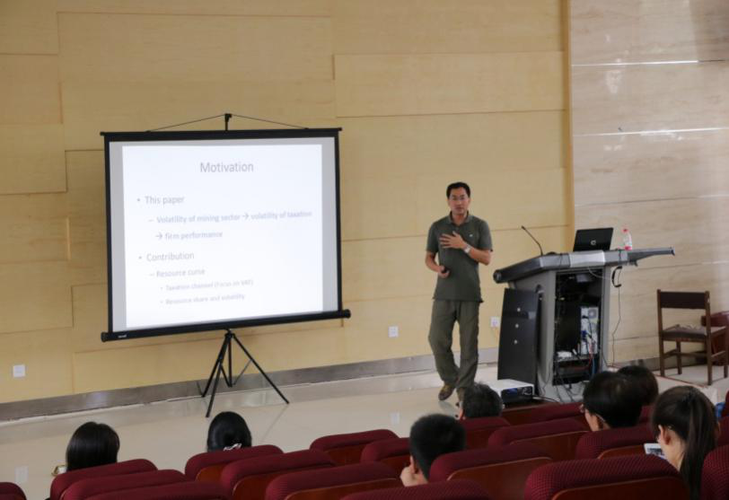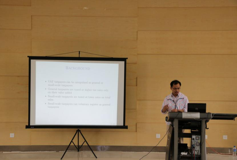 寇恩惠老师在题为“The response of small firms to vat thresholds and tax rates: Evidence from Chinese tax record”的演讲中,展开了他对营改增政策的深入研究。他从小公司对增值税的反应着手,提出了增值税的税率弹性及简并税率结构的福利效应这一现实情况,给在座师生提供了一个将学术与现实分析结合的新角度。