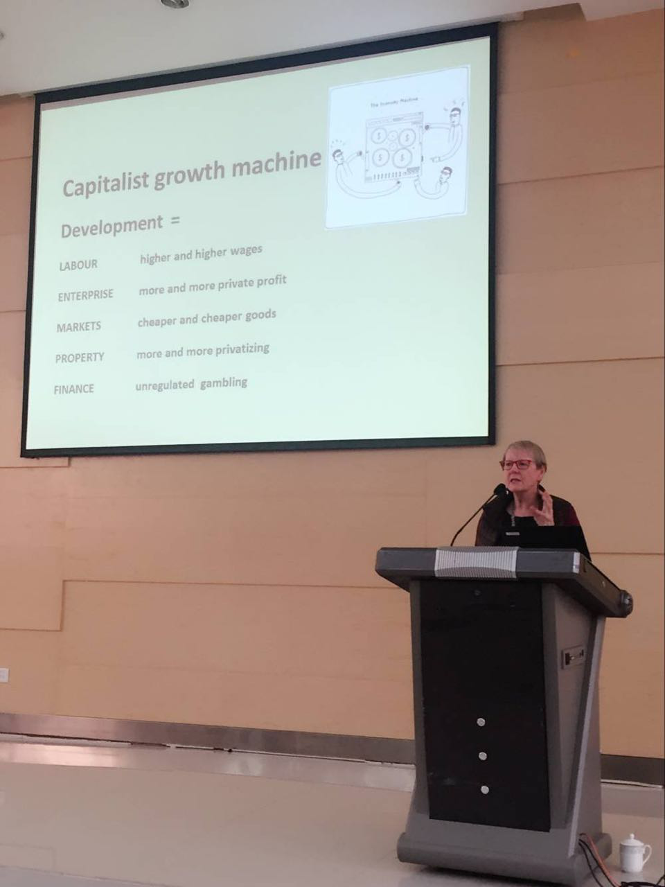 首先,BV伟德官方网站(会计学院)党委书记梁双陆上台为大家介绍了远道而来的凯瑟琳.吉布森教授。她于2005年被选举获得澳大利亚社会科学院院士荣誉,现为西悉尼大学文化与社会研究所教授研究员。作为国际地理、经济和社会科学相关研究领域的重要领军者,30年来致力于开设灵活而具有生命的经济研究和政策改进,并著有《资本主义终结》、《后资本主义政治》、《道德导向的社区经济转型》和《创造另一种可能的世界》等著作。