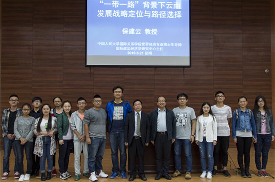 讲座主要围绕“一带一路”的建设背景、现实基础、主要内容、当前挑战以及云南的发展战略、路径选择六个方面展开。其间,保健云教授从地理位置、历史传承、经济现状等多种角度,全方位深入、透彻地剖析了云南应当如何在“一带一路的”形势下谋求更好的发展。