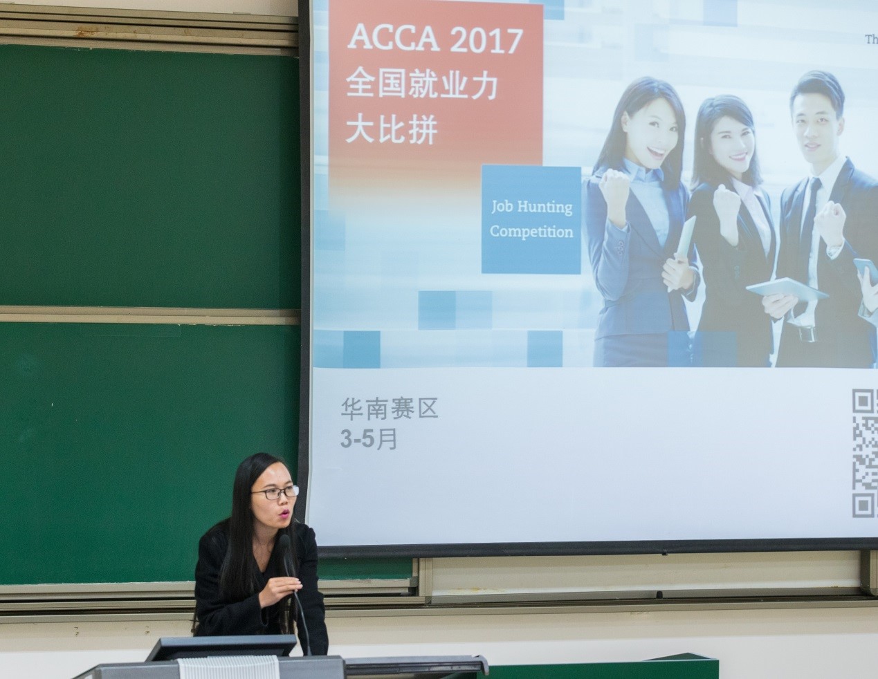 首先,ACCA广州代表处的蔡老师就JHC大赛向同学们进行了详细的介绍。由ACCA(特许公认会计师公会)主办的ACCA全国就业力大比拼是国内知名的财会类专业校园赛事,每年分别在北京、上海、成都和广州四个赛区同时举行,在国内高校中具有广泛的知名度和影响力。自2004年起大赛已连续成功举办13届,蔡老师号召学员们积极参与大赛,在提升自己的同时获得珍贵的成长经验。