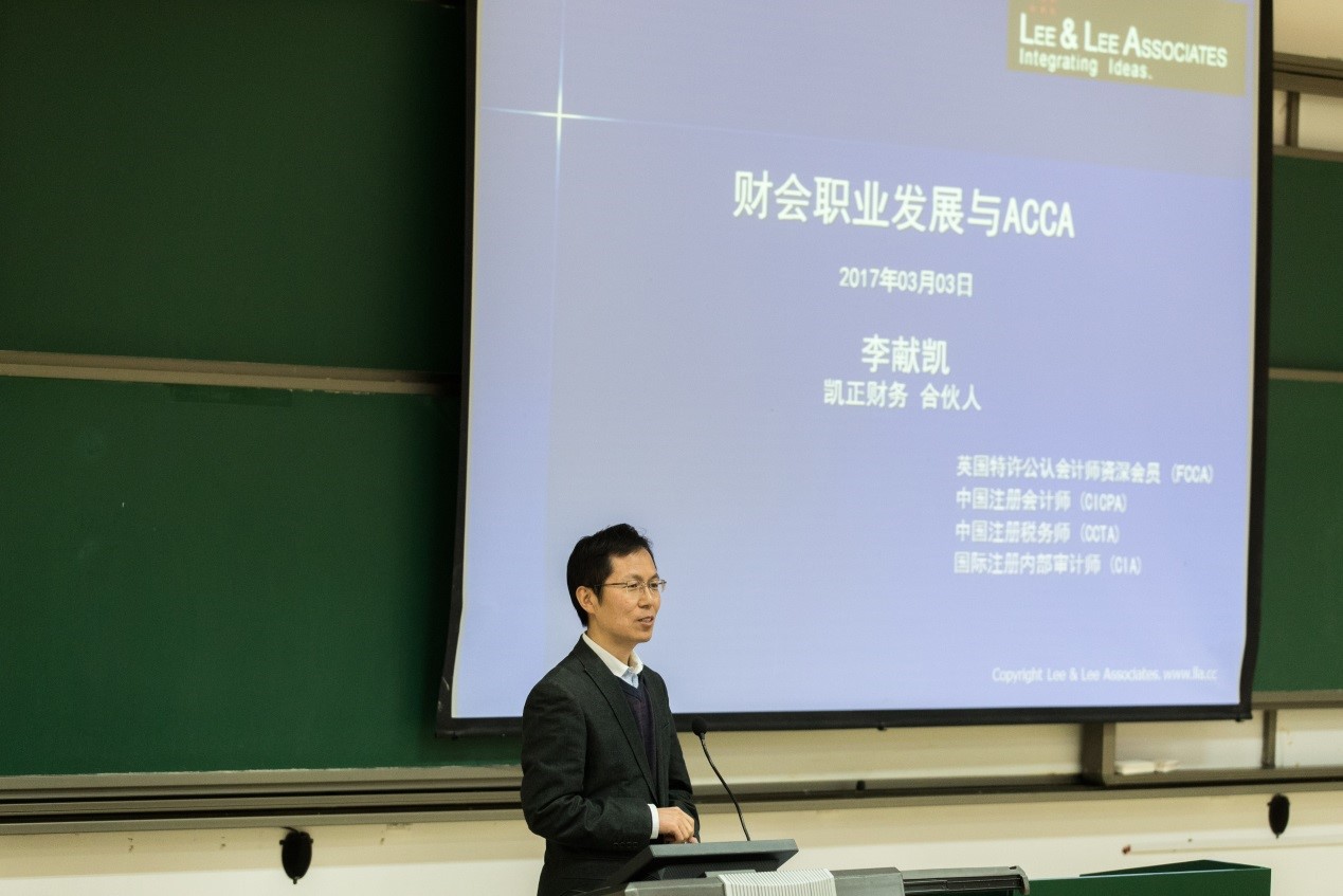 大会最后,凯正财务的合伙人李献凯先生与同学们分享了如何规划职业生涯以实现个人成长的经验。李献凯先生是FCCA(ACCA资深会员)、中国注册会计师、中国注册税务师和国际注册内部审计师,也是ACCA全球中小企业论坛中国区唯一代表。李献凯先生结合自身经历,用轻松诙谐的方式向同学们介绍了如何做好职业规划,提升个人核心竞争力,为未来的就业和职业发展做好充分准备。