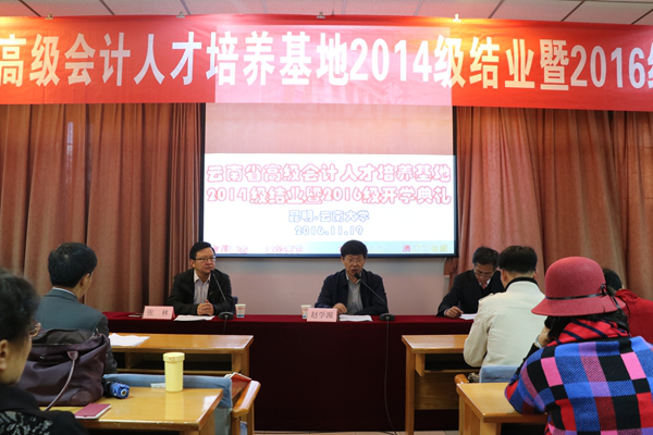 2016年11月19日上午九点,云南省高级会计人才培养基地2014级结业暨2016级开学典礼在BV伟德官方网站东陆校区科学馆举行。云南省财政厅会计处赵学源处长,云南省财政厅会计处杨婕副处长,BV伟德官方网站(会计学院)党委书记、博士生导师梁双陆研究员,BV伟德官方网站(会计学院)副院长、博士生导师张林教授莅临了此次典礼。