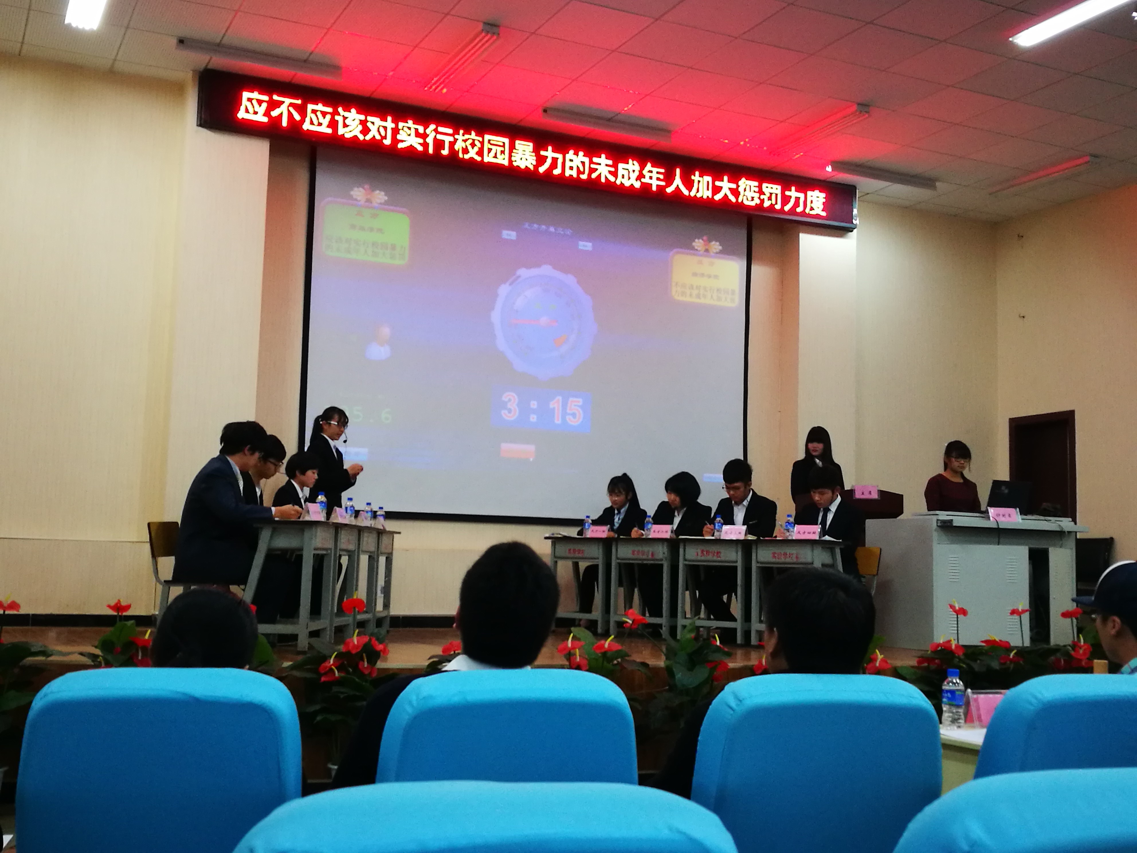 法治辩论赛是呈贡区未司办今年青少年法治宣传进校园的另一种形式。在呈贡团区委的指导下,与BV伟德官方网站法学院团委学生会合作,由BV伟德官方网站法学院主办的以未成年人违法犯罪主题为辩题的校级辩论赛,以期通过双方的陈述和争论,使观赛学生清晰直观地看到校园暴力的危害、国家司法的严肃和国家对未成年人的特殊保护,从而珍惜在校学习机会,明确违法犯罪行为,恪守法律底线。