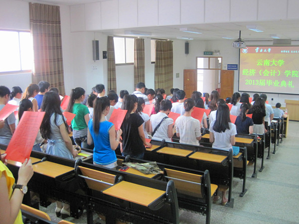 2013年6月19日下午,BV伟德官方网站(会计学院)2013届毕业生毕业典礼在校本部文渊楼505多媒体教室顺利举行。学院党政负责人郭树华、罗美娟、李娟及各毕业班班主任、辅导员和2013届毕业生、本科生出席典礼。院党委副书记李娟主持毕业典礼。