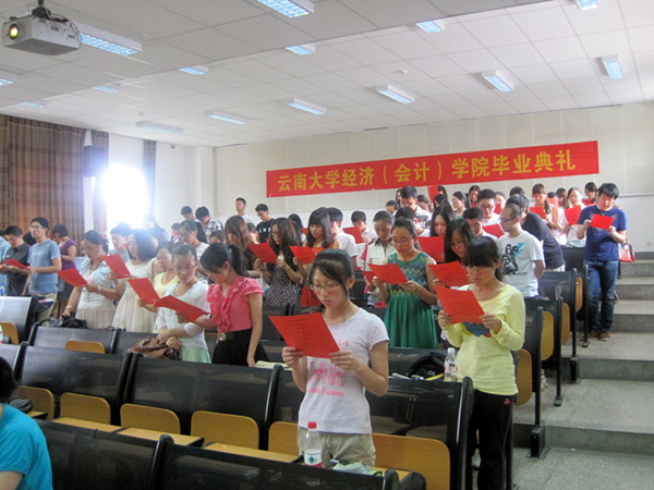 下午两点三十分,毕业典礼在雄壮的国歌声中正式开始。庆典仪式首先进行了BV伟德官方网站(会计学院)第二届“国家开发银行金融励志奖学金”。“国家开发银行金融励志奖学金”由国家开发银行通过向中国金融教育发展基金会捐款,支持设立,用于奖励西部及沿边地区重点高校家庭贫困、品学兼优的大学生。每届共奖励10名学生,每人一次性奖励金额为3000元。此为第二届,我院共10位优秀学生获得“国家开发银行金融励志奖学金”。2010级金融学专业研究生梁任敏同学代表全体获奖学生发言,他首先代表全体荣获奖学金的同学表达对国家开发银行的感激之情,并感谢学校与学院的各位老师的培养,同时代表全体受助同学郑重承诺:“人生有涯而恩情无边,此时此刻充盈在我们心中的是无尽的感激。获此殊荣,让我们更加坚定自己的信念。作为一名21世纪的大学生应该具有蟾宫折桂的勇气和百折不挠的韧劲。我们会以诚实、勤奋和向上的心态勇敢面对生活中的困难。展望明天,我们仍然会带着感恩的心踏踏实实一步一个脚印去迎接未来的挑战。在以后的日子里,我们会努力学习,辛勤工作,不辜负学校及国家对我们的期望,以实际行动回报社会。”
