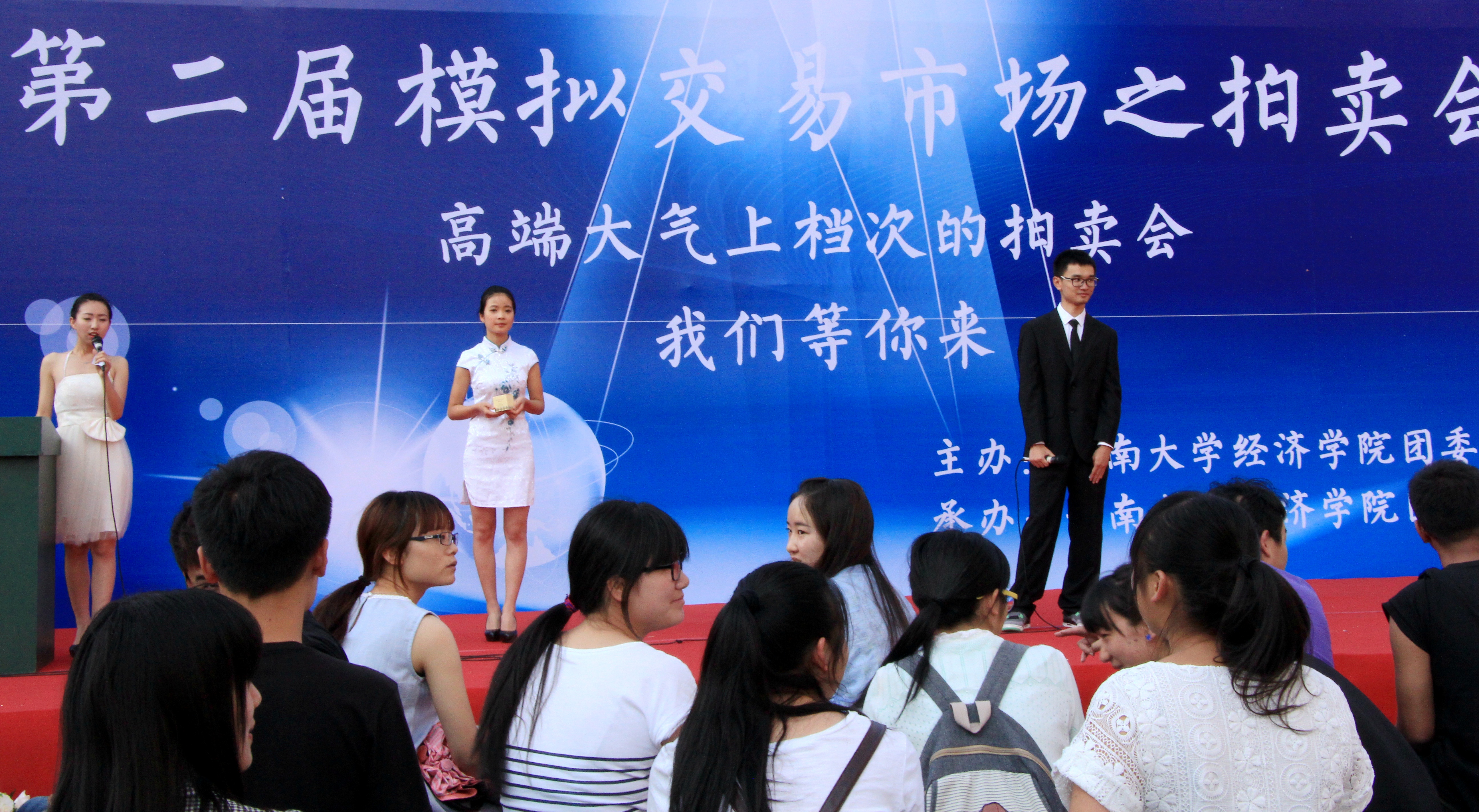 5月26日下午5:30,由经济(会计)学院团委学生会主办的校园大型拍卖会在楠苑食堂门口隆重拉开序幕,出席此次活动的有经济(会计)学院团委学生会主席李南毅及学生会主席团成员。