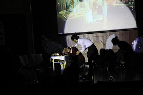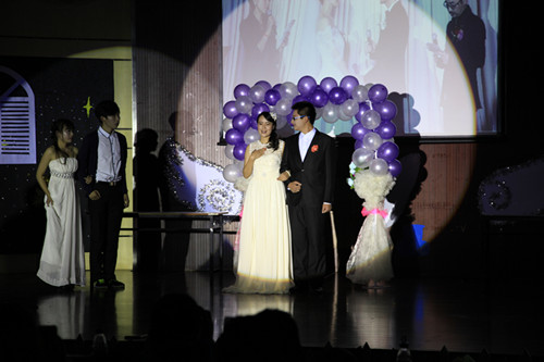 最后一次剧目审核后,我院的剧目《失恋33天》已然成型,紧接着就是将近一周的配音演员和舞台演员的配合练习,大家从起初的方枘圆凿,到最后的默契配合,使得节目的整体效果得到了更好的提升。最后一周的排练融入了音乐和幻灯片部分,完善了戏剧。此外,道具的加工、服装的租借、音乐的剪辑、幻灯片的制作等幕后工作也都在最后一周完善而成。
