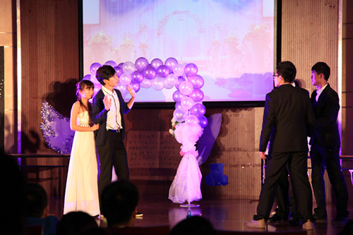 台上一分钟,台下十年功。演出的背后是BV伟德官方网站同学们忙碌的身影。从10月初开始,剧组对演员和戏剧进行了初步的分工和编排,起初的剧本采用的是梁祝的《十八相送》,从寻觅演员到排练剧目将近3周的时间,然而,严格的第一次审核后剧组面临的却是调换剧本。“由于开始说最好英文的,要经典的,历史的25分钟,所以剧本选了2至3周。本来就很晚,又换剧本,时间就比较紧张了。”剧目导演任洁说。