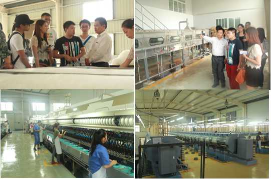 一行人首先在蚕茧造型的大门前合影留念,然后直接进入厂房。小分队参观了蚕丝被的生产制作工艺及流程。之后,小分队进入缫丝厂房,依次参观了烘茧、挑茧、缫丝、检验、废水处理等生产工序。小分队成员切身体会到通过各部门层层严格把关,各员工不断辛苦努力,才能得到优质的生丝。生产过程中公司还通过废水处理系统等环保手段实现了零排放生产。