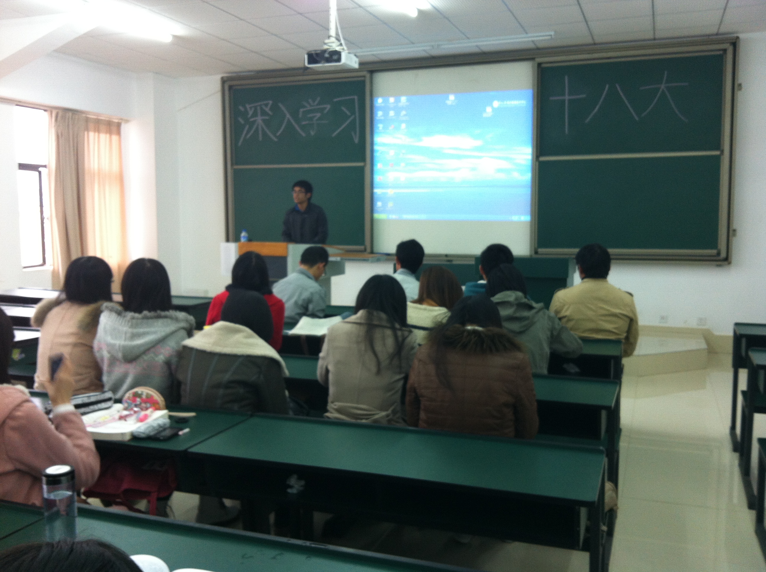 深入学习“十八大”会议后,同学们都热烈讨论,积极发表自己的感想。通过这次的学习,大家对我党的方针政策,为国家的发展、世界的和平、人类的进步所做出的贡献有着深刻的认识和体会。作为新一代的党员,我们研究生身上肩负着和过去不同内容,却有着相同意义的历史任务。通过学习讨论,与会的学生党员们增强了对“十八大”精神的认识和理解,在校党委和学院党委的带领下,我们将继续认真把握十八大的精神实质和丰富内涵,将十八大精神与学习生活相结合,不断进取,争先创优。