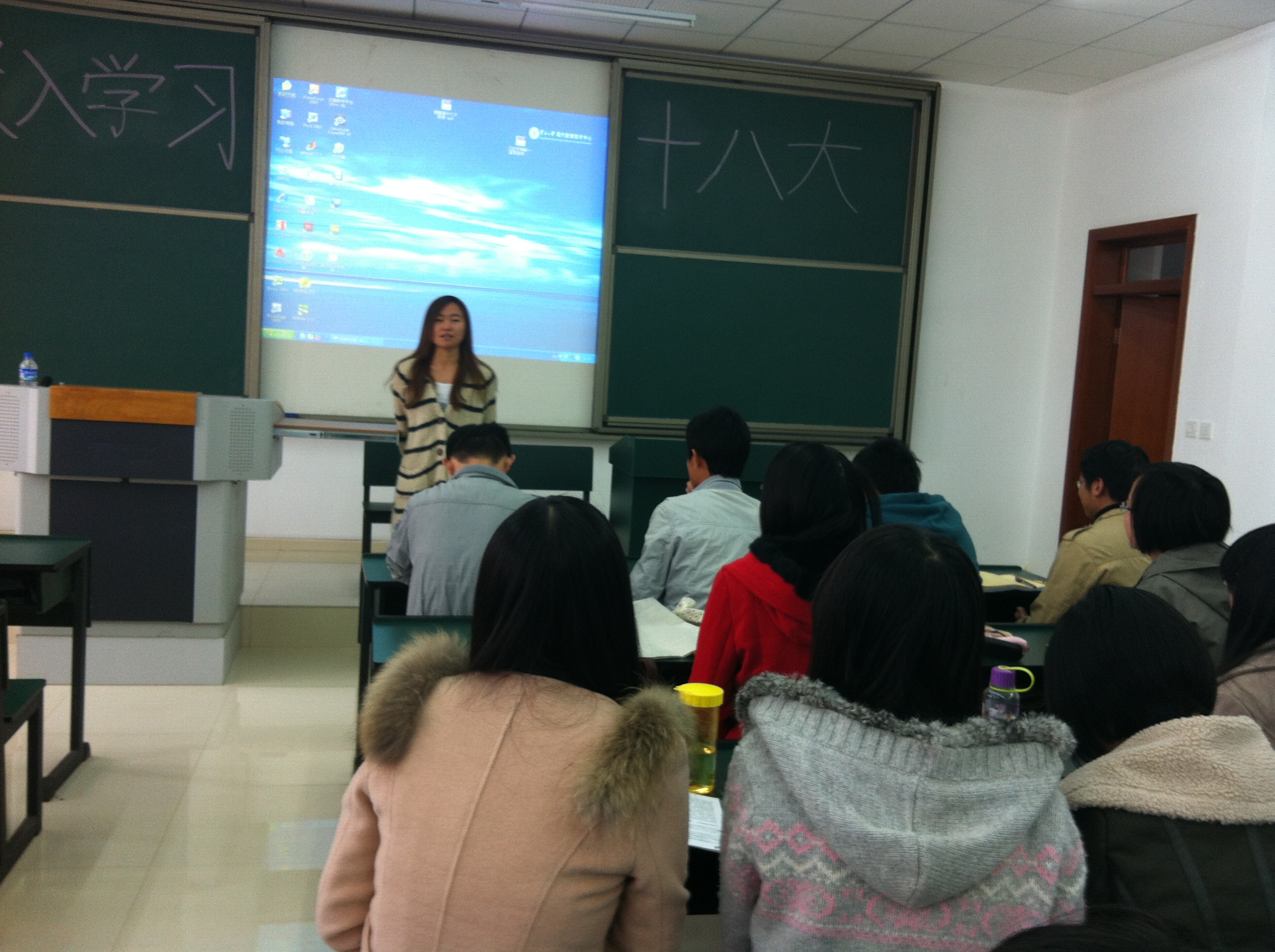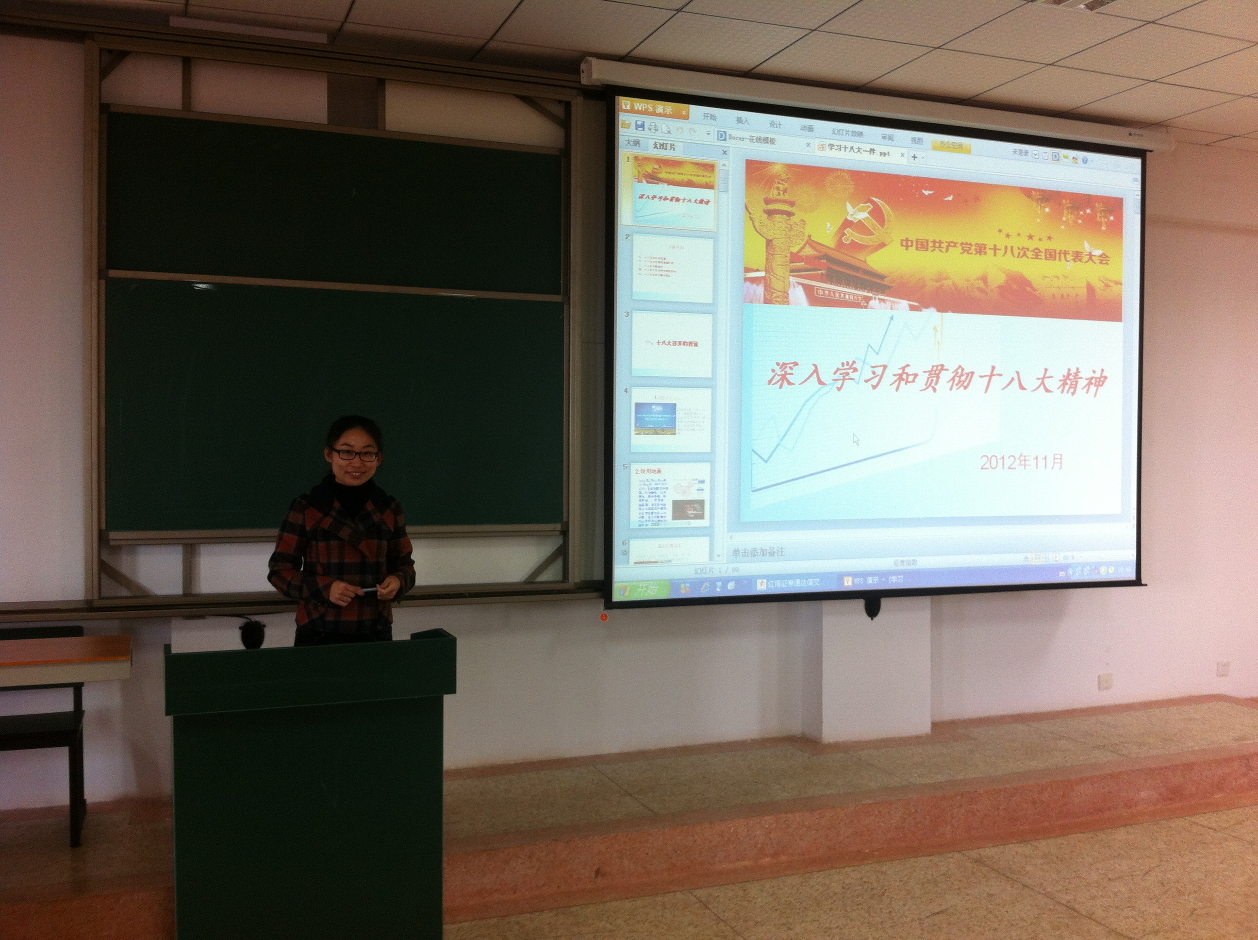 在观看完胡锦涛同志的十八大报告和习近平总书记《复兴之路》讲话后,党小组全体党员同志又分小组结合我们的研究生生活集中讨论了十八大精神和《复兴之路》讲话。讨论结束后,由各小组派一名代表上台论述讨论成果。