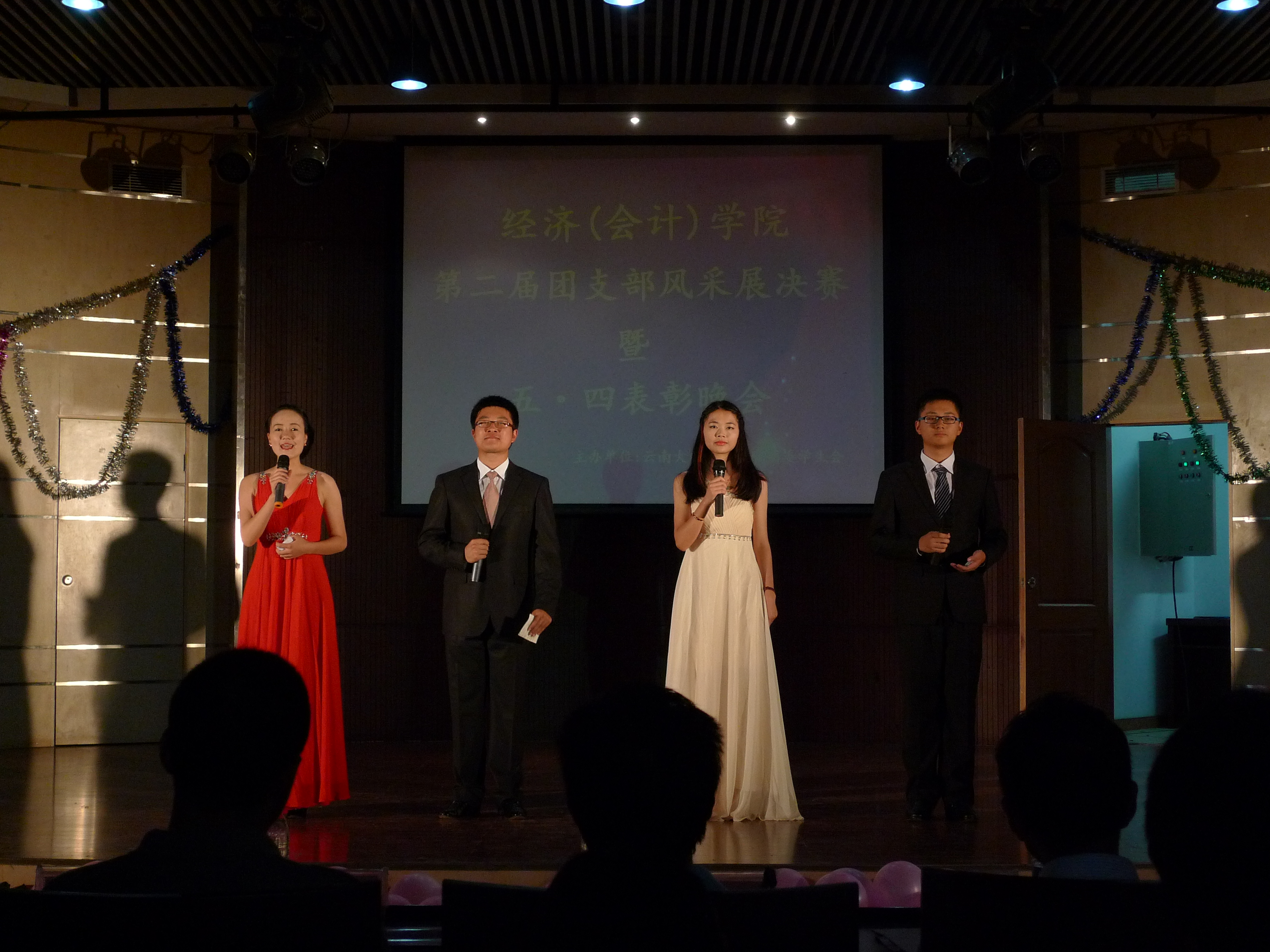 2013年5月30日,经济(会计)学院第二届团支部风采大赛决赛暨五·四表彰晚会在呈贡校区楠苑综合楼多功能报告厅举行。校教务处副处长董立昆,校学生处副处长李湘云,校团委副书记李娅佳,经济(会计)学院党委书记郭树华、院长施本植、院党委副书记李娟、副院长罗美娟、院团委书记丁江辉,校公安处及呈贡校区各学生园区管理中心等部门相关领导,经济(会计)学院师生代表一同出席晚会。