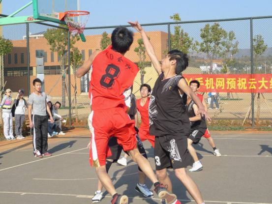 开幕式结束后,比赛尚未开始,场边就已经站满了观众,现场气氛十分活跃。参赛队伍经过短暂热身之后,17点30分,随着裁判的哨令,双方正式开赛。严守硬对、激烈争夺,默契传球、完美配合。双方抢球、断球、防守、进攻,队员们在场上运用娴熟的个人技术和精准的投篮以及精密的团队合作为胜利而战。比赛异常胶着激烈,扣人心弦,而队员们在场上地精彩表现也赢得了场下观众们的阵阵喝彩声。比赛的最终结果是:10财经:09外贸(42:34),10外贸:10会计(42:34),11金保:09金保(27:17),10金保:11会计(28:34)。