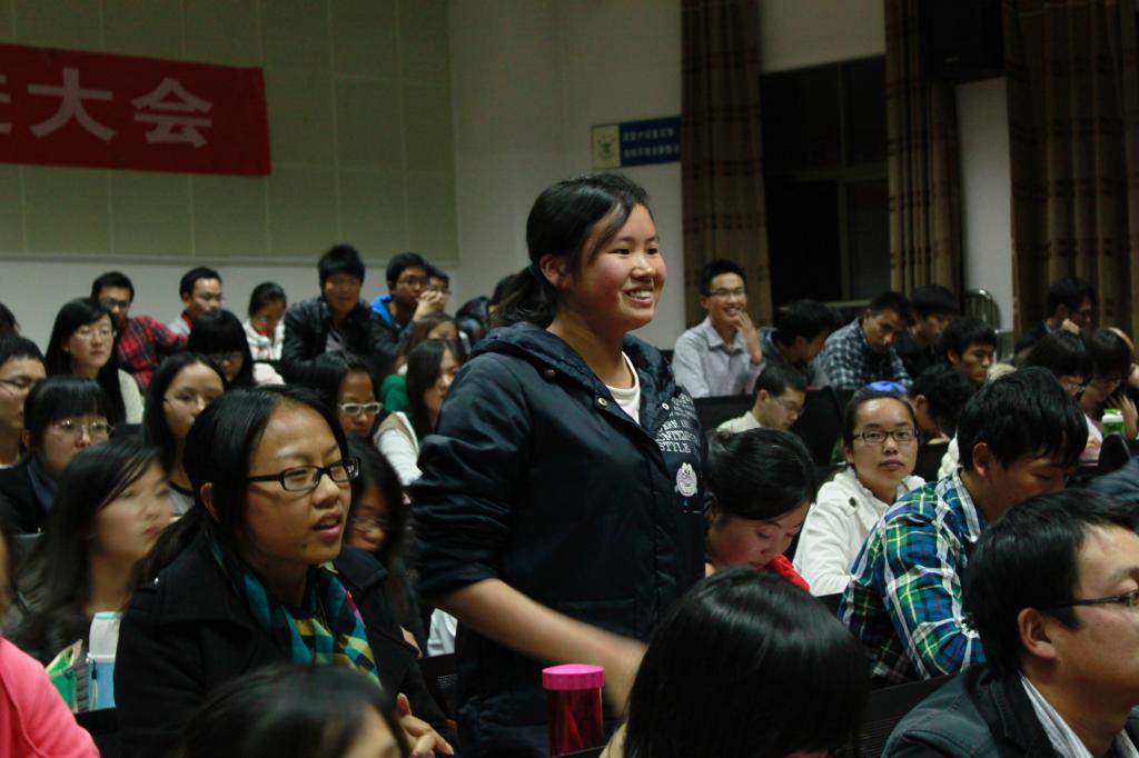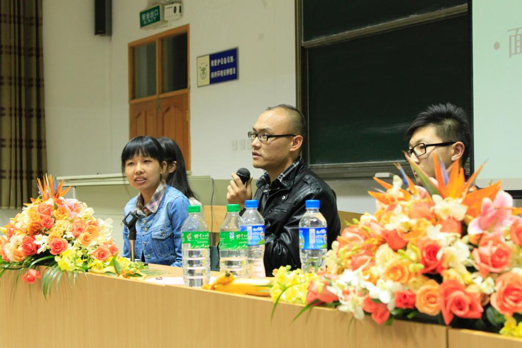大会还专程邀请到近年来成功就业的学院优秀毕业生代表段文斌、李晗锐、张晓军、陈彦琼、曲磊等几位学长学姐与广大2013届毕业生分享成功经验,为学弟学妹们答疑解惑。八位学长学姐与应届毕业生分享了他们成功就业的心得体会和经验教训,包括如何自我定位、如何有针对性的选择工作、制作简历、准备面试,如何准备国家公务员考试和银行考试等。会上,学长学姐们与在场的同学进行了深入的互动交流,同学们踊跃提问,学长学姐们认真解答,为学弟学妹们指点迷津,精彩独到的讲解赢得了在场毕业生的阵阵掌声。