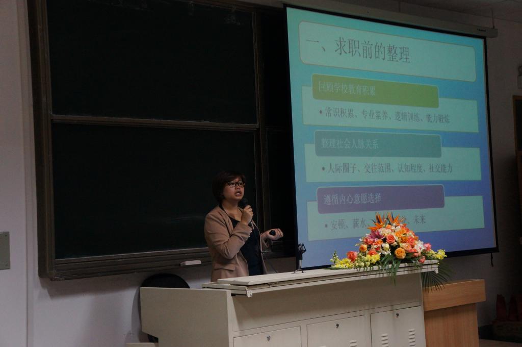 大会特邀嘉宾——银行业资深招聘专员赵姗姗女士从招聘方的角度向同学们具体讲解了就业过程中的技巧:从简历制作、笔试准备、再到面试技巧,都给毕业生们提供了重要的经验和有针对性的切身指导,具有很强的实际操作性与借鉴指导意义。赵女士综合分析了往年毕业生的应聘实例和经验教训,希望同学们吸取经验,扬长避短,保持良好心态,根据社会需要,努力提高综合能力。