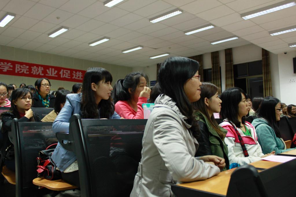 李娟老师对学院近几届毕业生的就业情况进行了介绍,并殷切希望2013届毕业生能够找准定位、积极准备、沉着应战、注重细节,积极关注就业,注意积累经验,主动调适心态,认真抓住适合自身条件的机会,以积极自信的态度择业就业。李娟老师强调,毕业生要树立良好的心态,把握今年11月到明年5月毕业生就业的黄金时段,更重要的是需要找准定位、选定目标,以积极的态度面对当前就业形势和市场环境。同时,李娟老师也提醒毕业生们加强自我保护意识,注意就业中的安全问题。