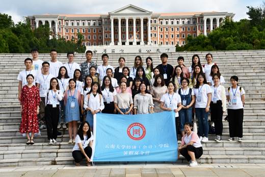 2019年6月16日下午,BV伟德官方网站(会计学院)的赵雪霏和范红梅带领我院2019年全国优秀大学生学术夏令营营员参观校园。一行人从BV伟德官方网站出发,沿图书馆—法学院—云大会堂—知味堂—泽湖—明远楼一线参观学校。