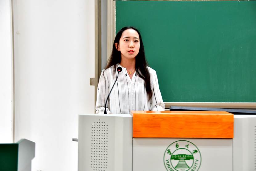 王潇悦同学代表研究生新生进行发言,代表2019级新生向开学季为新生热情服务的老师、同学表达了感谢,并代表新生提出了在未来三年研究学问、修身明德、定位发展的学习愿景。