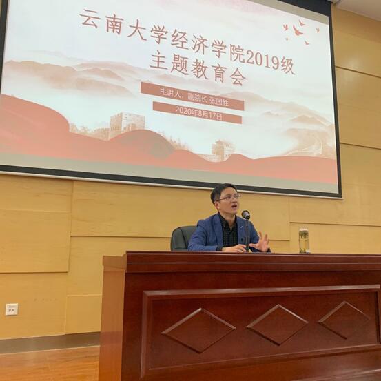 第五场主题教育由副院长冯勇老师主讲,主题为宏观经济环境下的云南省省情。首先,冯副院长结合曾经在云南省发改委的工作经验,向同学们全面深入的分析了全国的宏观经济环境,深入详实地介绍了云南省基本情况,着重强调了云南省的特色发展优势和基本的大政方针,为同学们进入社会提供了宏观层面的知识储备。他还鼓励广大青年朋友们,“我们坚信,只要全省上下坚定不移向着习近平总书记指引的方向砥砺前行,彩云之南必将迎来更加辉煌灿烂的明天,我们的生活一定会小康幸福”。