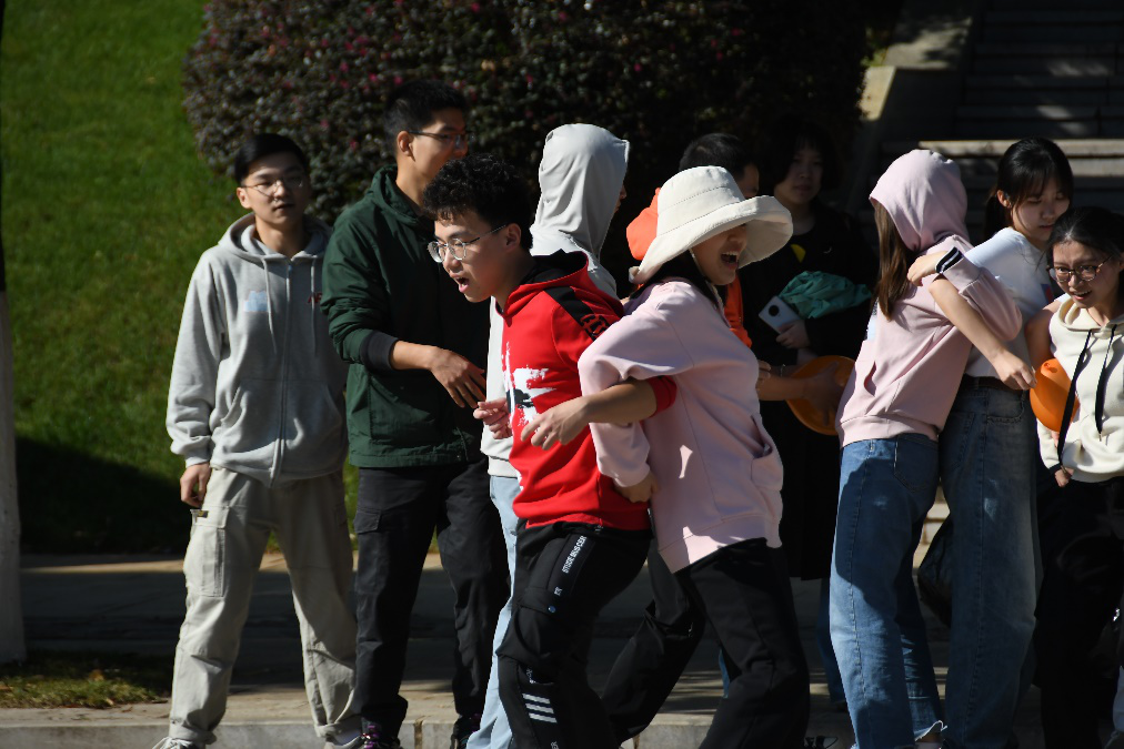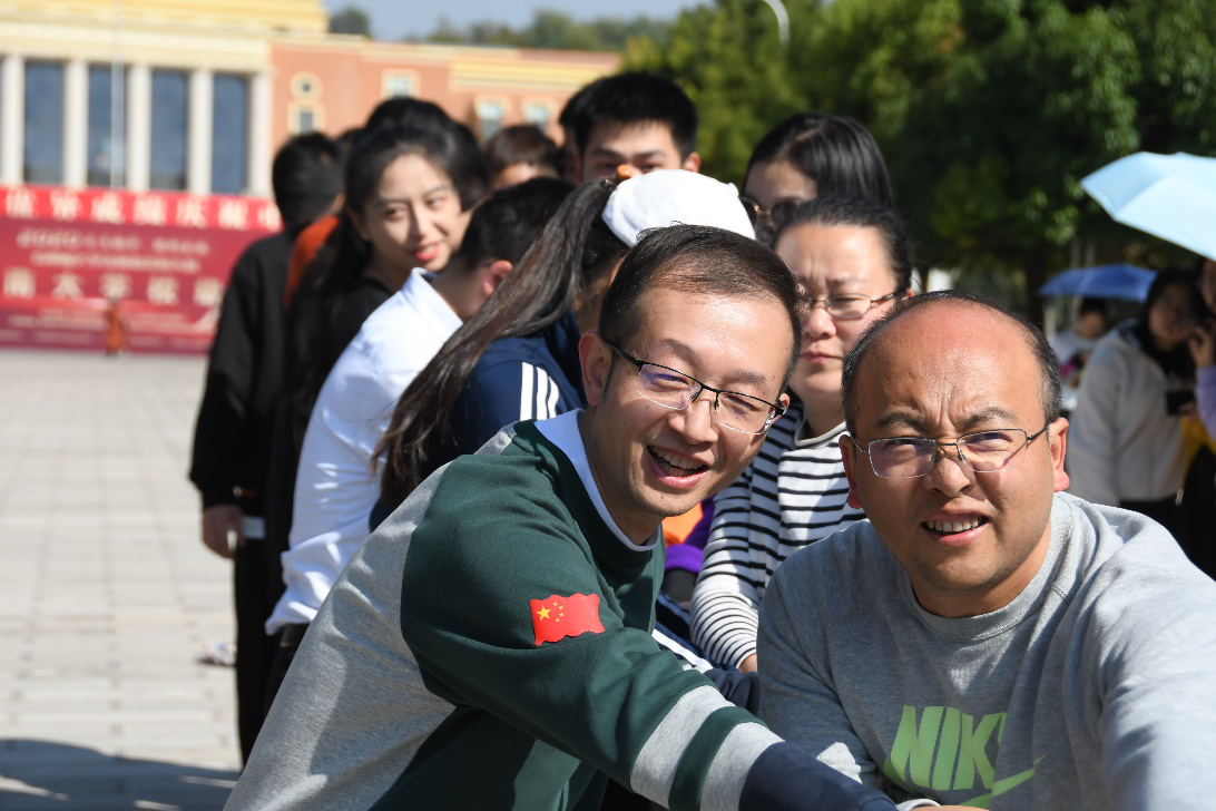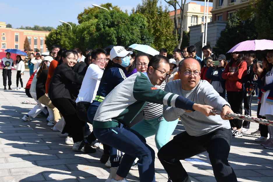 在“环环相扣”比赛环节,选手员们顽强拼搏、奋发自强的运动精神成为了运动场上一道亮丽的风景线。整个过程欢声笑语不断,既增进了师生们的默契,也充分锻炼了大家的柔韧性。