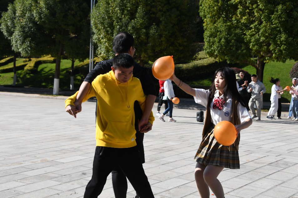 接下来是“螃蟹赛跑”项目,参与者两两背对,夹着气球争分夺秒地穿梭往返赛道间,更高,更快,更强的运动精神在此刻成为了我院每位参赛者的信念。在两轮激烈的比拼中,最终角逐出比赛的前三支优秀队伍。