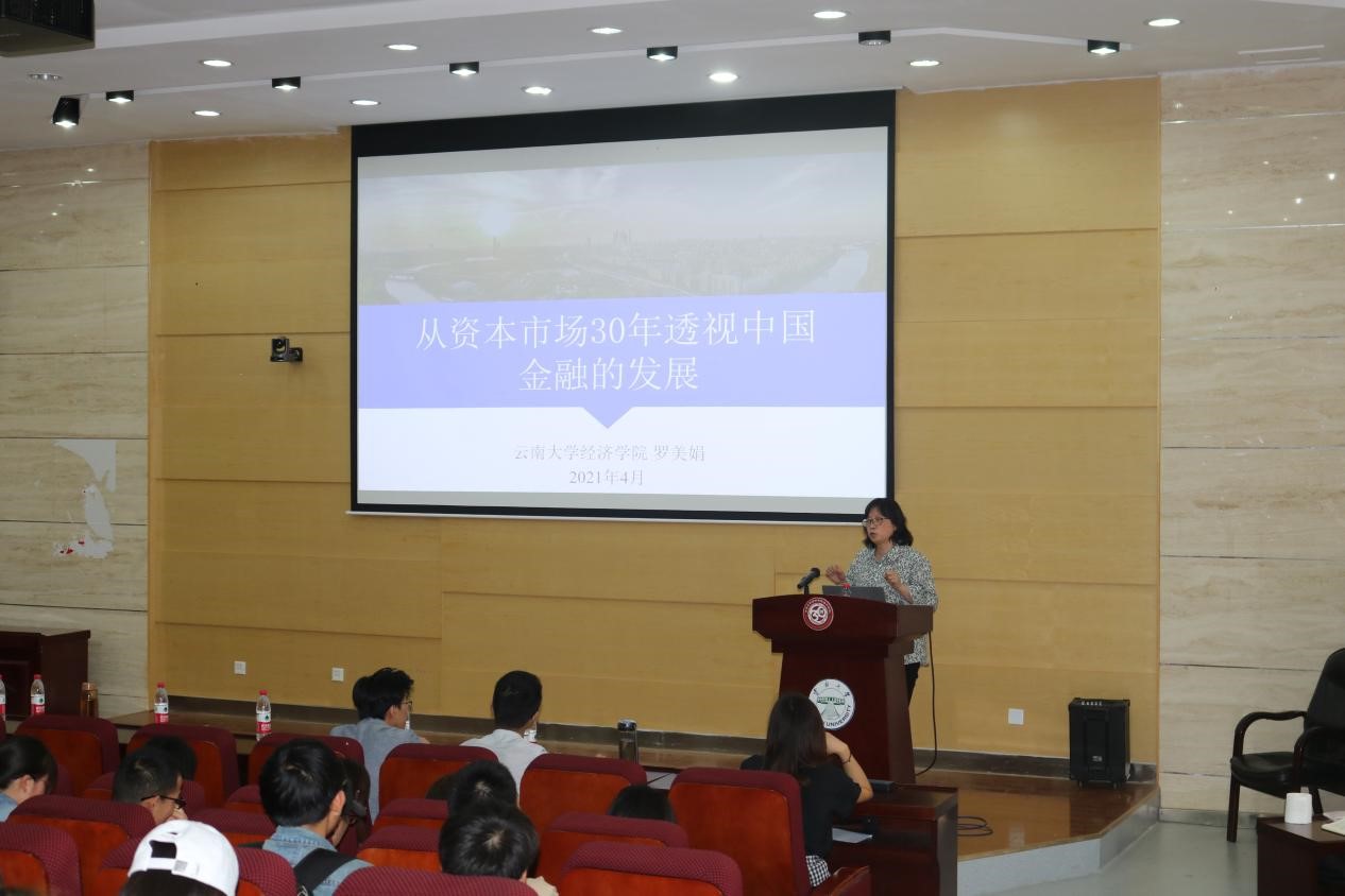 2021年4月24日晚,BV伟德官方网站东陆社会科学研究社系列学术活动在BV伟德官方网站报告厅举行。BV伟德官方网站教授、博士生导师罗美娟教授受邀进行了主题为《从中国资本市场30年--透视中国金融的发展》的学术讲座,共计230余名师生到场聆听。