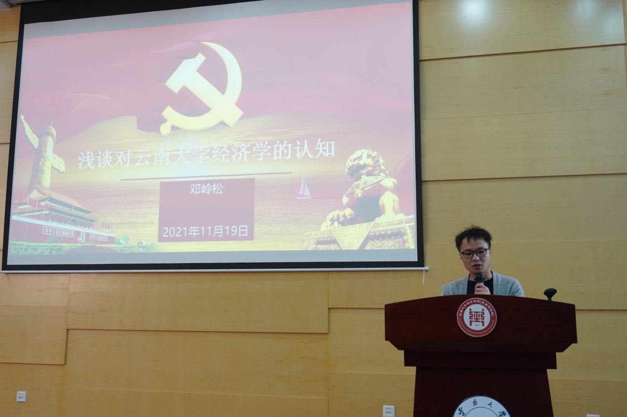 研讨会首先发言的是学生党员,2021级区域经济学硕士研究生邓龄松作为学生代表,结合东非地区工作经历,地区间的经济差异引起了许多思考,从而决心攻读经济学。社科处副处长张剑源进行点评,表示一切伟大的发现都基于提出问题,邓同学以亲身经历回答了“为什么要读书以及为什么要读研”的问题,在学习过程中,需要接近生活,接近实际地提出问题,并不断探索寻找解决的方法。