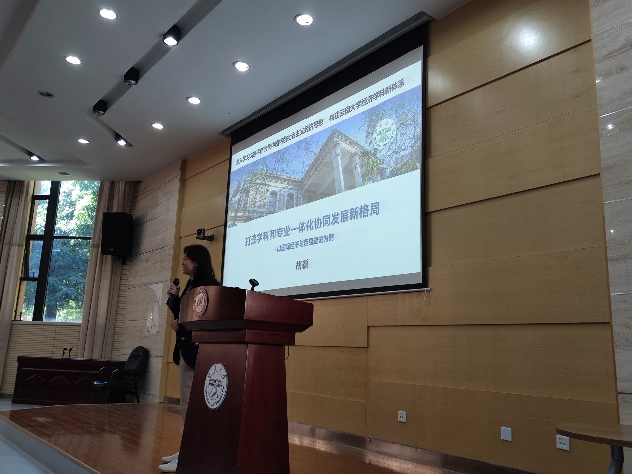 接下来外贸系主任胡颖副教授作为系所主任代表发言,专业建设以学科建设为基础,学科建设为专业建设培育人才。打造专业与学科协同一体化发展新格局,主要在于育人,通过以赛助教的方式,改变教学手段,基于调研、基于项目培育教师和学生,推动师生科研能力的发展。原书记郭树华教授点评认为立足于新发展阶段的构建,聚焦人才培育和专业发展,拓展社会科研和人才服务等值得肯定。紧跟十四五规划步伐,根据前期取得的成绩,查缺补漏,确定专业发展目标,层层分解,具体到每件事上。