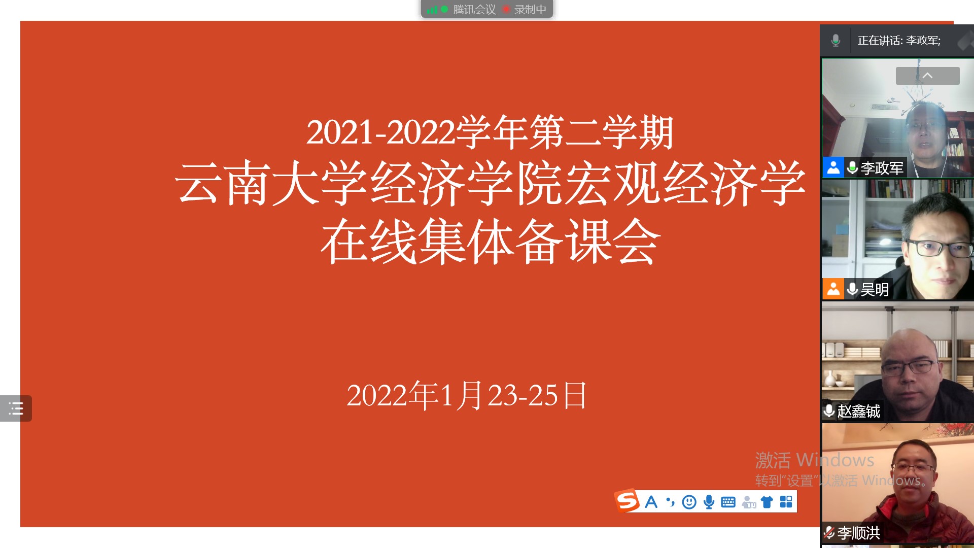 2022年1月23-25日为期三天的BV伟德官方网站宏观经济学教学组网上集体备课会圆满结束。参会的老师有马子红、姚书杰、吴明、李顺洪、赵鑫铖、柴毅、杨洋、杨孟禹、李亚玲、王旭、曹骥老师。集体备课会邀请南京师范大学李政军教授参与。