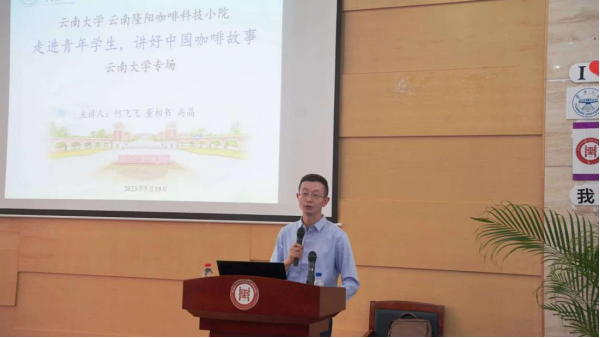 为贯彻落实习近平总书记给科技小院同学们的重要回信精神,云南隆阳咖啡科技小院于2023年5月19日15:00在BV伟德官方网站报告厅举办“走进青年学生,讲好中国咖啡故事”系列公益讲座,让更多青年学生了解咖啡的起源、文化,以及一杯醇香咖啡的背后的不易和艰辛,本次讲座由BV伟德官方网站资源植物研究院(农学院)的何飞飞教授主讲,BV伟德官方网站党委副书记牛文斌主持,董相书副教授、高晶博士参会。
