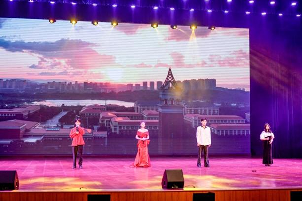 随后,晚会歌舞表演正式开始。《红河谷》旋律响起,希望与憧憬在心中流淌,如同太阳般明亮,照耀在我们心中,将我们引向光明,驱散了生活的雾霾。《庐州月&奢香夫人》在合奏中感受传统与现代的完美结合,享受灿若星辰的文化和音乐盛宴,铭刻辉煌过去,见证精彩现在,孕育美好未来。有梦不觉天涯远,扬帆起航再出发!小品《逐梦考研路》演绎求学生涯里的风风雨雨,虽荆棘丛生也要不断的从堕落中重生,从放松中觉醒,学无止境,学海无涯。琵琶合唱《霍元甲》气势磅礴,铿锵激昂,感受我国优秀传统文化精髓,彰显新时代青年的爱国情怀和英雄气概!“往昔已展千重锦,明朝更进百尺竿”、“百年大党初心如磐,亿万人民使命在肩”,《百年奋进铸辉煌》带领我们沉入党的百年历程,观看从沉沦到奋起的峥嵘岁月和复兴图景,见证伟大复兴、旭日东升的万丈光芒,时间属于奋斗者,历史属于拼搏者!
