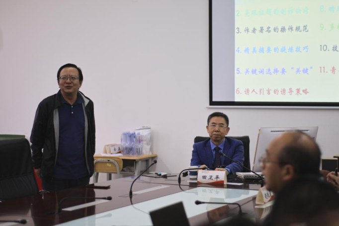 报告会上,田卫平先生结合四十余年学术期刊编辑经验,系统阐述了学术论文写作的整体逻辑和系统流程。田卫平先生从学术论文的基本概念入手,生动阐释了论文各组成部分的有机联系,让学者直观理解论文各部分重要性,并分享了编辑处理论文的方式及流程,提醒学者在标题、摘要等关键环节精心打磨。同时,建议青年学者写作时要充满自信,提升耐性,将深刻的内容与优美形式相结合,吸引编辑和读者,并详细讲解了论文写作流程中选题、设计、撰写、修改和投寄的技巧及注意事项。