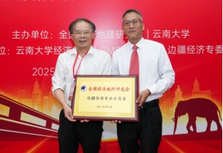 云南大学经济学院院长张林教授致欢迎辞,强调了本次会议聚焦边疆经济发展前沿议题的重要意义,期待学界为边疆经济理论创新与实践突破贡献力量。全国经济地理研究会会长张可云教授在致辞中指出,边疆经济专委会的成立标志着学科建设进入新阶段。开幕式上举行了授牌仪式,全国经济地理研究会向新成立的边疆经济专业委员会授牌。开幕式由全国经济地理研究会副会长、边疆经济专委会主任梁双陆教授主持,并代表专委会接受授牌。