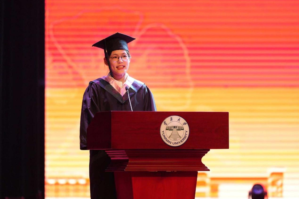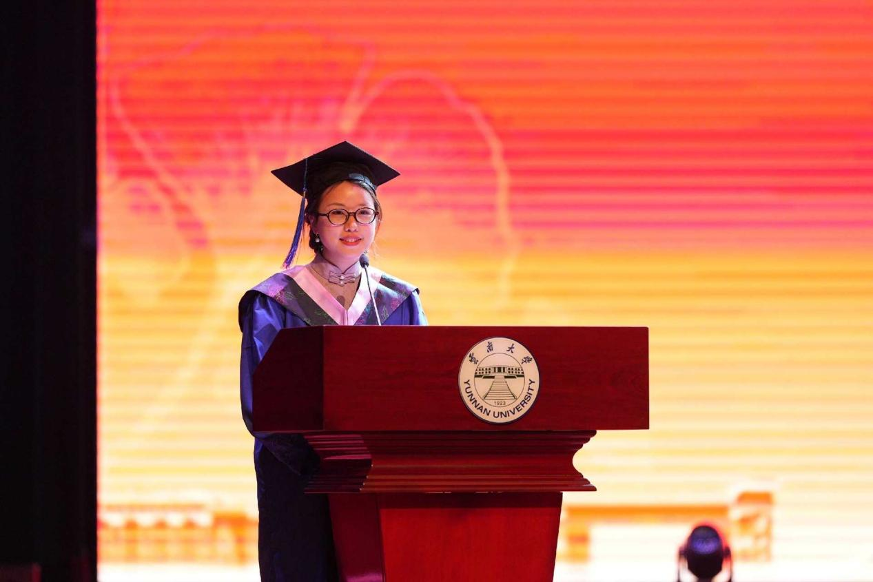研究生毕业生代表周烜同学分享七年云大求索感悟,祝愿漫漫前路上,每一个同学都能够不忘记最初的梦想和信念,相信心有所指梦终会圆。