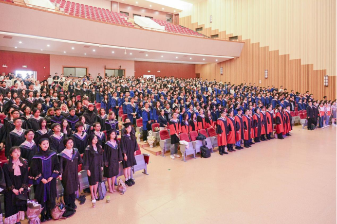 云大会堂内,青春的赞歌潺潺流淌,毕业视频记录着同学们成长的点点滴滴,2025届毕业典礼的序幕正式拉开。