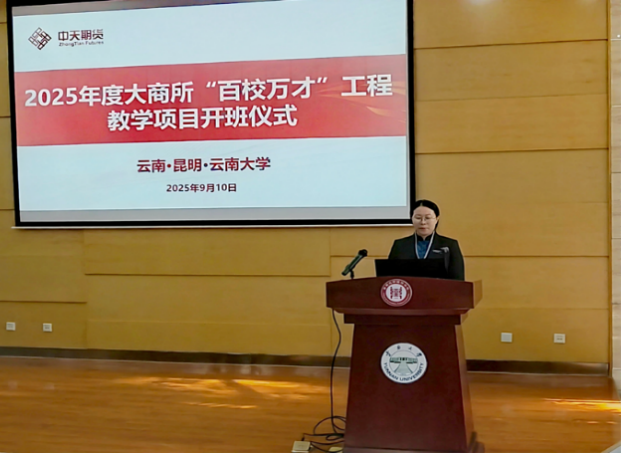 中天期货副总经理于青在致辞中指出,此次合作课程能够顺利落地,离不开大连商品交易所“百校万才”工程项目的有力支持,“百校万才”工程通过支持高校开展教学、研究、师资培养和学生交流等项目,为行业培养了大量优秀人才,也为期货公司与高校的合作提供了宝贵平台。此次合作的《期货和衍生品》课程涵盖了期货及衍生品的基础理论、交易策略、风险管理等核心内容,还特别设置了实践环节,帮助学生将理论知识与实际操作紧密结合,真正掌握期货衍生品领域的专业技能。同时,她表示中天期货将为学生提供实习、就业的机会,助力学生在期货衍生品领域实现职业梦想。