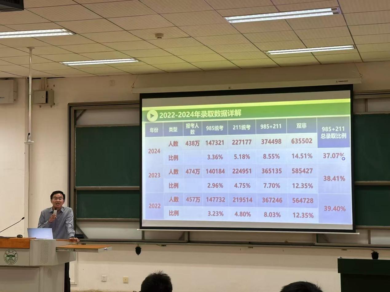 云南海天教育发展有限公司张志明老师聚焦本科升学、就业面临的挑战、机遇、规划进行专题辅导。张志明通过数据分析,详细讲解了升学院校选择、专业复习、时间规划等要注意的事项,以及就业路径选择要重点做好的准备,以案例形式为同学们升学就业能力提升进行了答疑解惑。