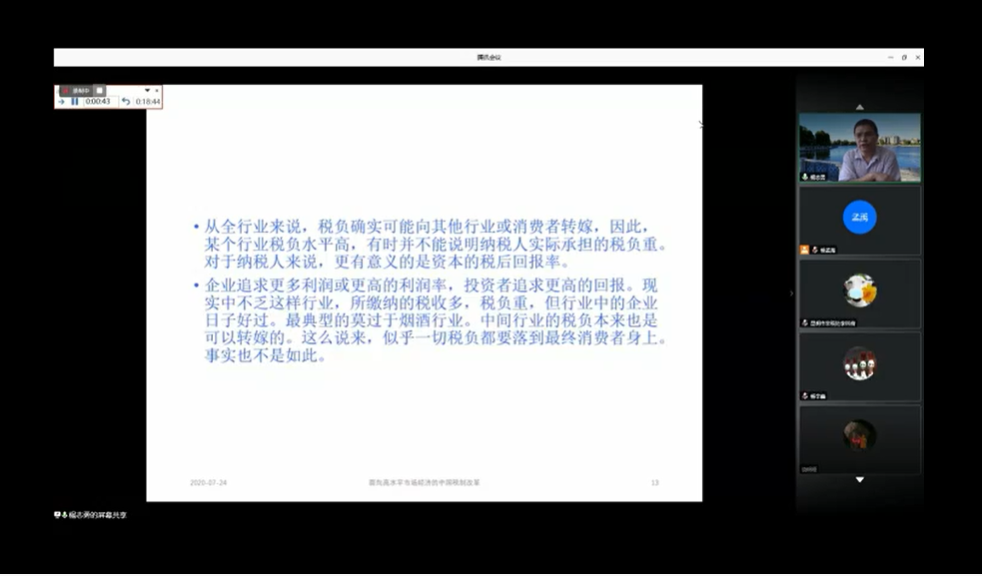 2020年7月24日,由BV伟德官方网站政府非税研究院主办的中国政府非税收入管理高端学术论坛第一期在线上举办。本次论坛邀请了中国社会科学院财经战略研究院副院长杨志勇研究员进行了题为“面向高水平市场经济的中国税制改革”的交流报告,BV伟德官方网站党委书记梁双陆研究员担任主持,BV伟德官方网站众师生与云南省各地财政厅人员共享“云端”资源,与杨志勇研究员交流讨论,受益良多。