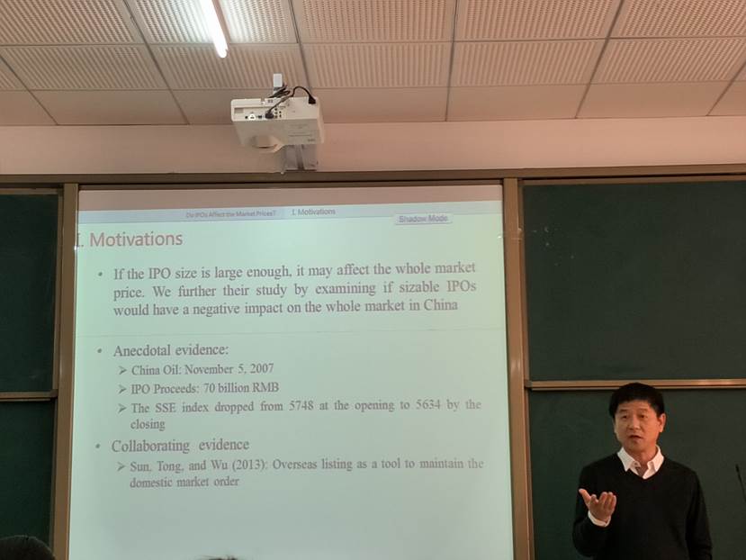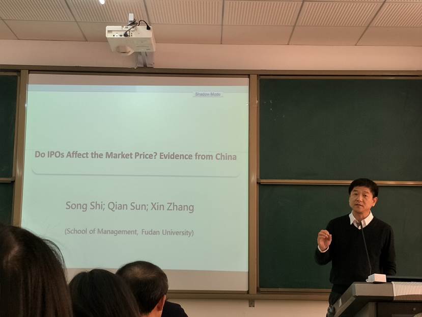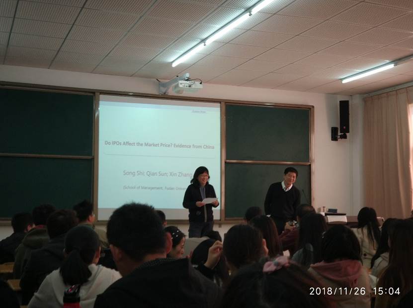 本次讲座由罗美娟副院长主持,在对孙谦教授的学术成就进行简单的介绍后,讲座正式开始。本次报告孙谦教授围绕自己的论文《Do IPOs Affect Market Price? Evidence from China》,向大家详细分享了撰写论文时的个人研究方法和经验。