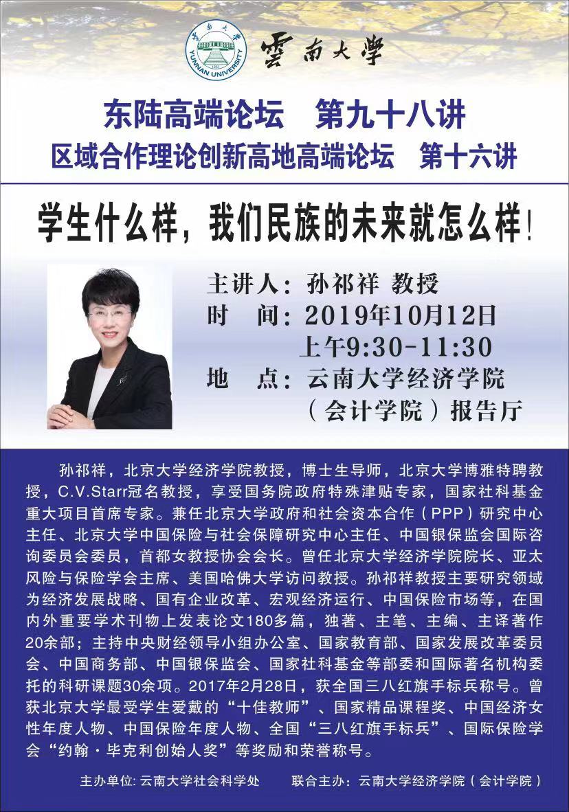 上一条:区域合作理论创新高地高端论坛第十六讲:孙祁祥教授——学生怎么样,我们民族的未来就怎么样