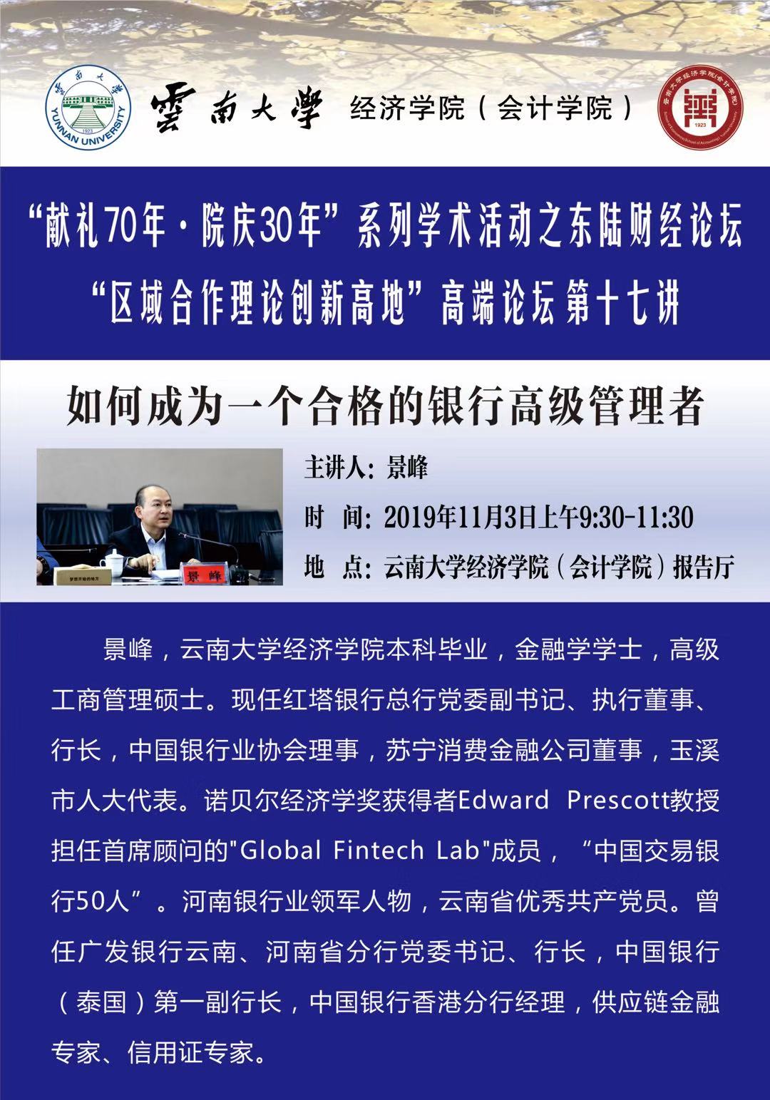 上一条:区域合作理论创新高地高端论坛第十七讲:红塔银行行长景峰——如何成为一个合格的银行高级管理者