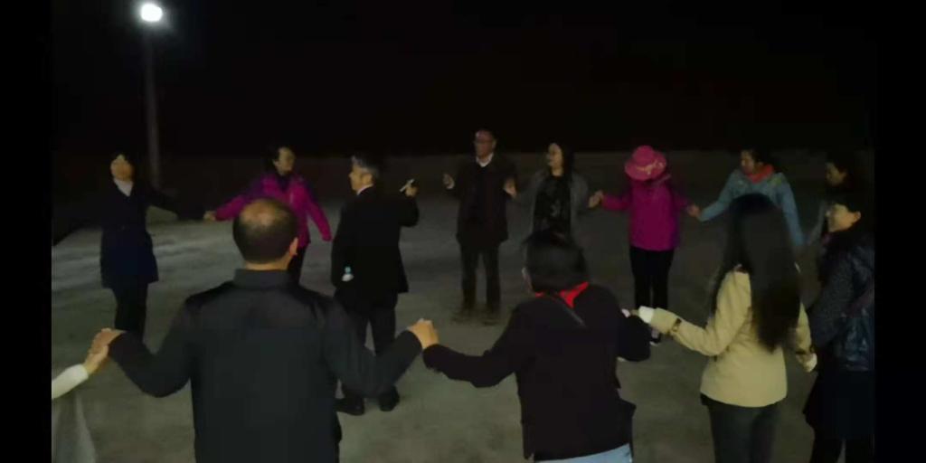晚餐后,在梁双陆院长的民族舞带领下,全体教职工在农村大坝载歌载舞,以手机电筒作篝火,围圈踏步民族风。