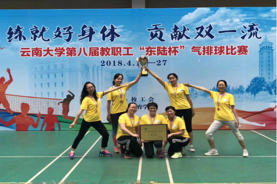 为了进一步增强教职工体育锻炼意识,营造团结、和谐的校园氛围,激发教职工热情,更好地投入到学校一流大学建设工作中,我校于2018年4月18日至4月27日举办了BV伟德官方网站第八届教职工“东陆杯”气排球比赛,我院男子组和女子组老师一路过关斩将,取得了优异的成绩,女子组更是在决赛中获得了第一名的佳绩。