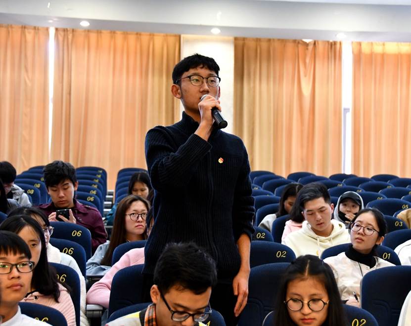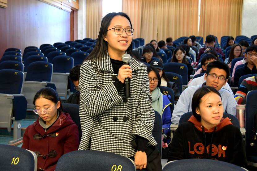 在这次令人受益匪浅的讲话结束后,同学们对领讲同学们分享的内容提出了很多有意义的问题。滕丽娜同学结合自身数据处理经历现场解答了同学们提出的有关多种数据库如何选择自己所需和具体使用方法的问题。聂雨佳同学解答了同学们关于考研学校如何挑选、如何培养自己逻辑思维能力的问题。彭方成同学和赵雪霏同学一起为同学们解答了如何做好支教前的心理准备以及在出国留学与参与支教之间如何抉择的问题。白静同学为同学讲解了明大德、守公德、严私德的内涵。制定目标的益处和如何把目标付诸行动。