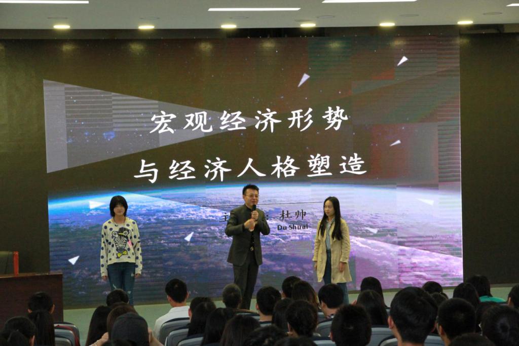 2019年4月12日星期五下午两点,在我校学生会堂134报告厅,美林银行最大华人持股人、团中央创新创业导师、北京大学、中国社科院客座教授、北京广播电视台《杜帅开说》创始人杜帅老师应邀到BV伟德官方网站,为我们带来了题为“宏观经济形势和经济人格塑造”的讲座,杜老师幽默风趣又极富思想性与运用性的报告吸引了BV伟德官方网站各年级学生积极参与。