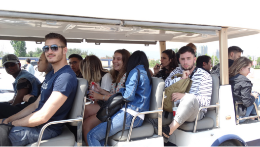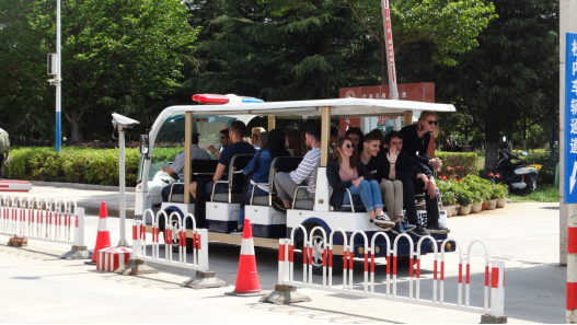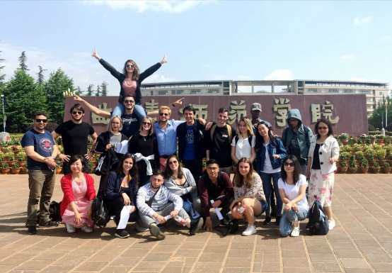 到达师范学院后,大家首先一起来了张全家福,身高两米多的Jeremy还把他的好朋友Samantha举了起来,瞬间有了山高人为峰,一览众山小的既视感。在合照后,我们乘上了观光车共同参观美丽宽广的校园。都说图书馆是一座学校的灵魂,曲靖师范学院的图书馆也可谓是独具匠心,吸引了同学老师们的眼球。