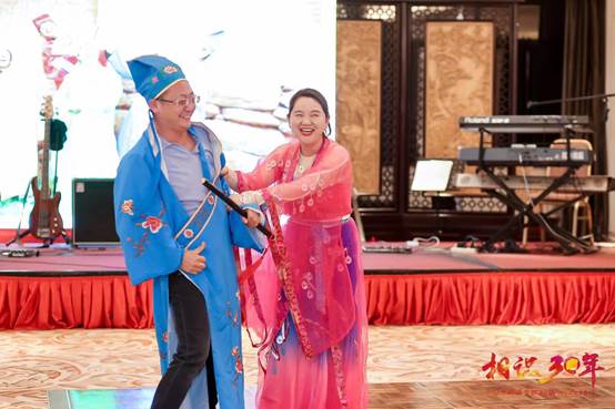 三个班同学合演的小品喜剧《江南才子游云大》是晚会的压轴大戏,精彩纷呈,古香古色的戏服,唯妙唯肖的神态,风趣幽默的台词,构筑了如梦如幻、穿越时空、深情款款的场景。欢乐今宵,激情燃烧!欢笑洒向宴会厅的每一个角落,喜悦荡漾在每一位同学的心里。在这个火树银花、秋风送爽的夜晚,聚会圆满地划上休止符。