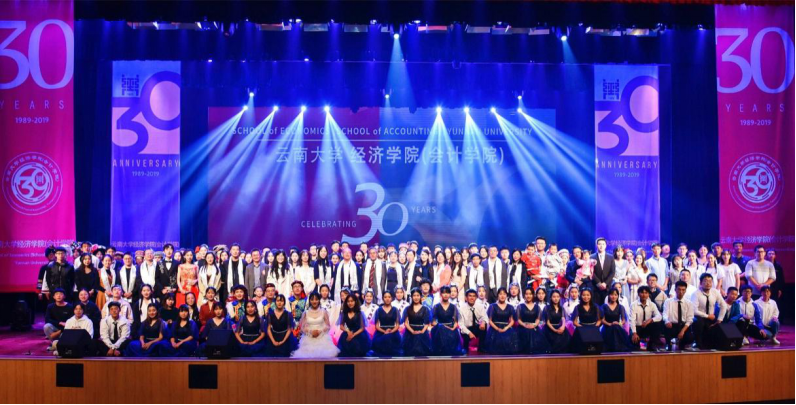 梁院长致辞结束后,精彩纷呈的节目一一上演。情景剧《我们的三十年》,追忆了经院发展征程,令在场观众回味无穷。随后的一曲《我喜欢》唱出了我院学子对云大的热爱,对经院的深情。歌舞《民族大融合》中各民族欢聚一堂,共祝经院成立30周年。小品《同学》展现了同学之间的浓浓情意,历久弥香。古典舞《菩萨蛮》和歌曲串烧乐声悠扬,舞姿靓丽,演绎出传统与现代结合的瑰丽。《我与我的支教故事》将研究生支教团奉献青春年华,助力山区孩子实现梦想的精神表现得淋漓尽致。